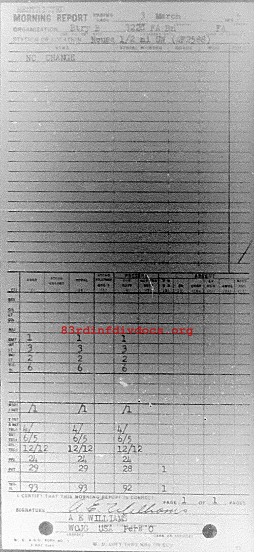 Morning report B/322FA for March 3, 1945