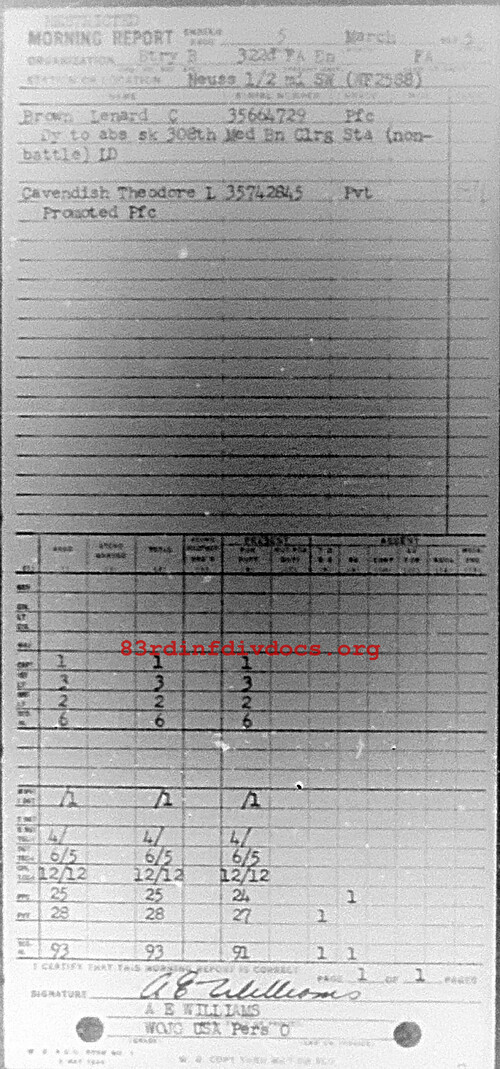 Morning report B/322FA for March 5, 1945