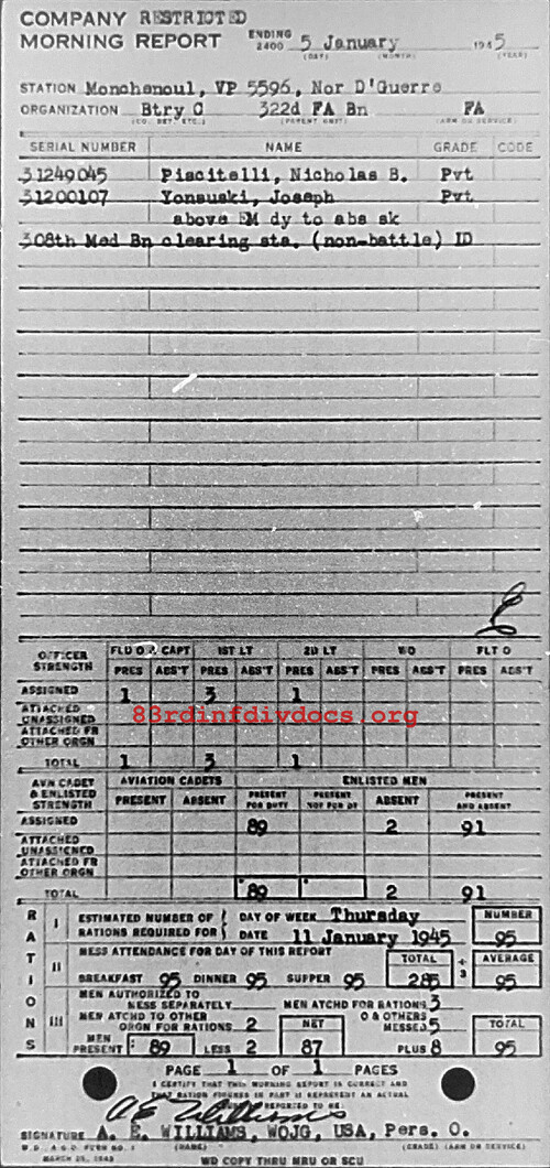 Morning report C/322FA for January 5, 1945