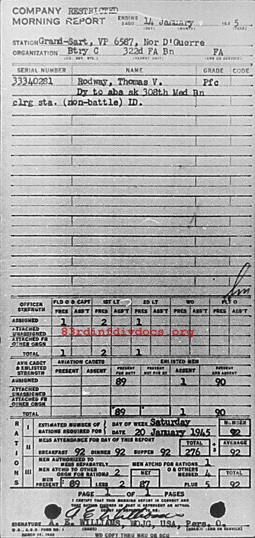 Morning report C/322FA for January 14, 1945