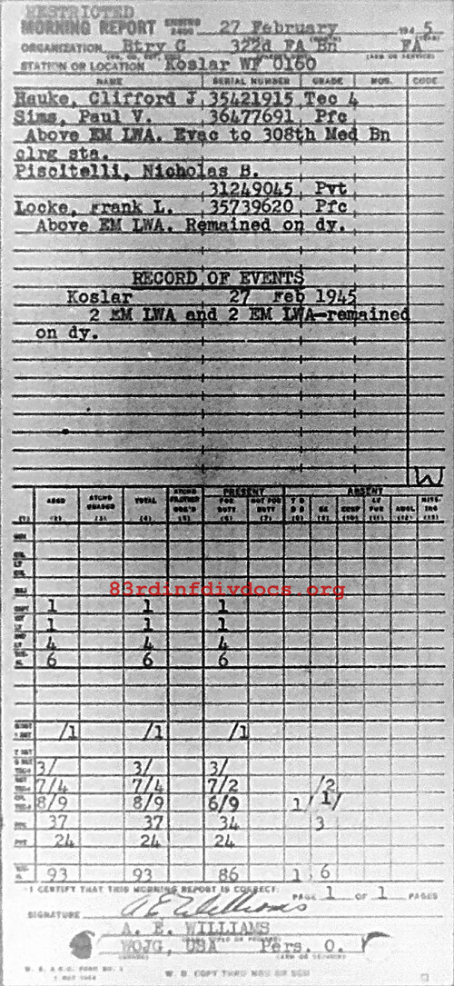 Morning report C/322FA for February 27, 1945