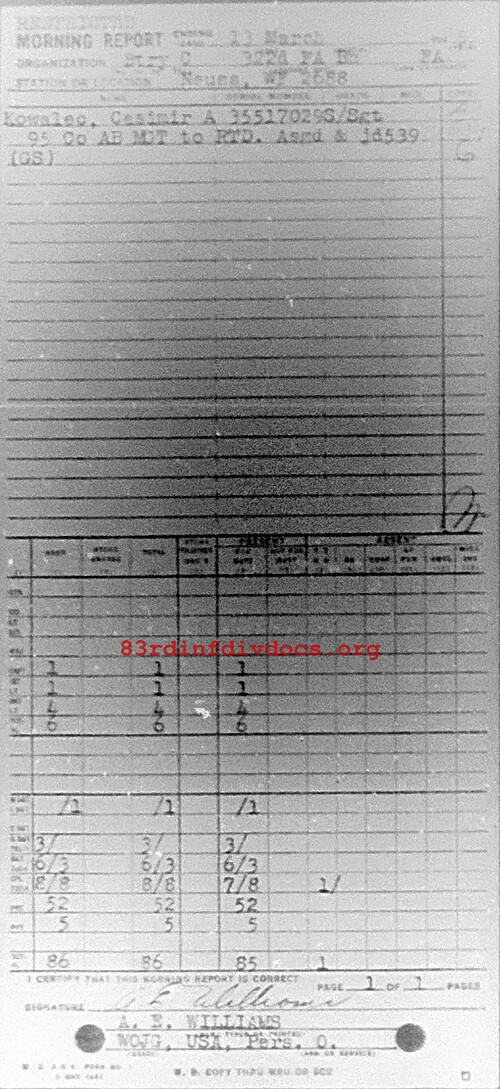 Morning report C/322FA for March 13, 1945