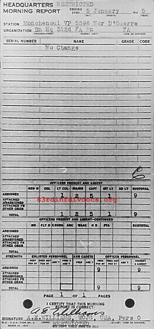 Morning report HQ/322FA for January 5, 1945