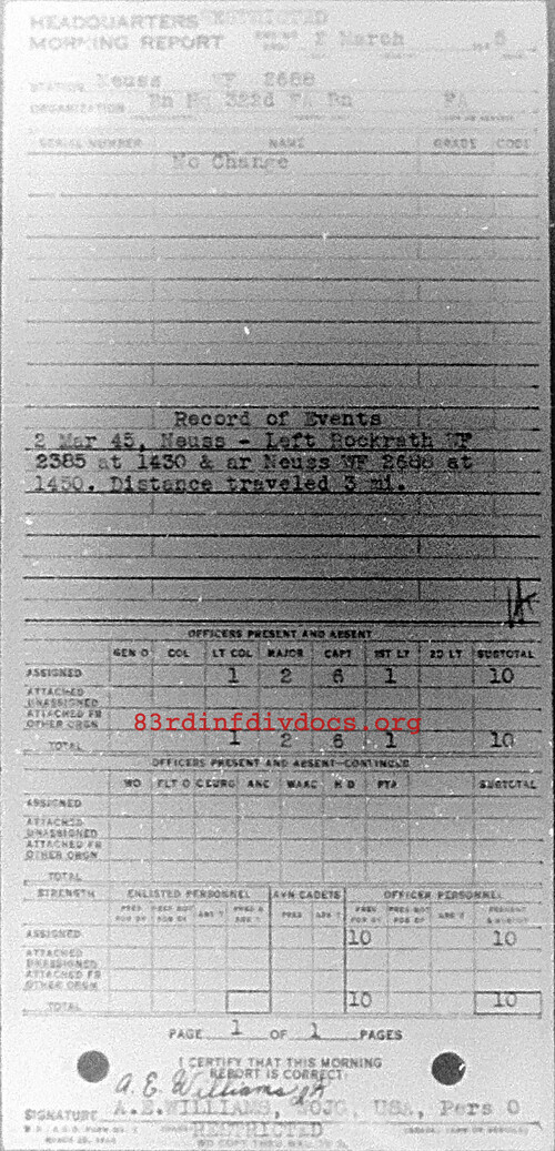 Left Rockrath wF2385 at 1430 and arrived Neuss at 1430. Distance traveled: 3 miles.