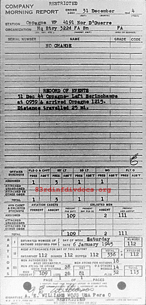 Left Serinchamps 0939 and arrived Oppagne 1215. Distance traveled 25 miles.