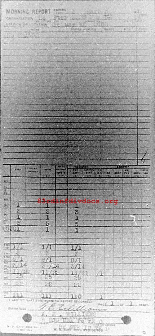 Morning report HQBTRY/322FA for March 3, 1945