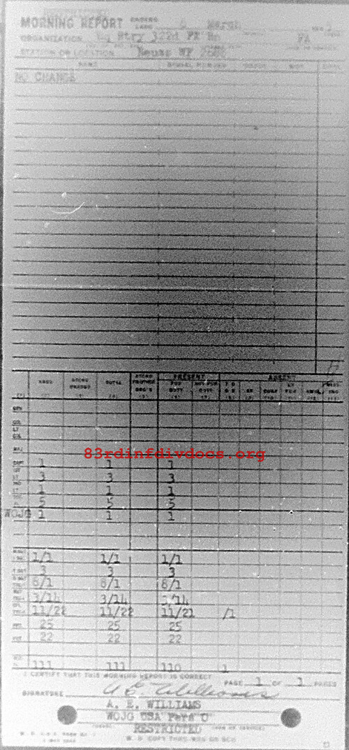 Morning report HQBTRY/322FA for March 6, 1945
