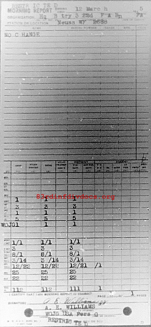 Morning report HQBTRY/322FA for March 12, 1945