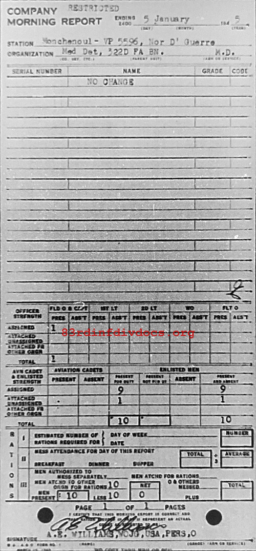Morning report MEDDET/322FA for January 5, 1945