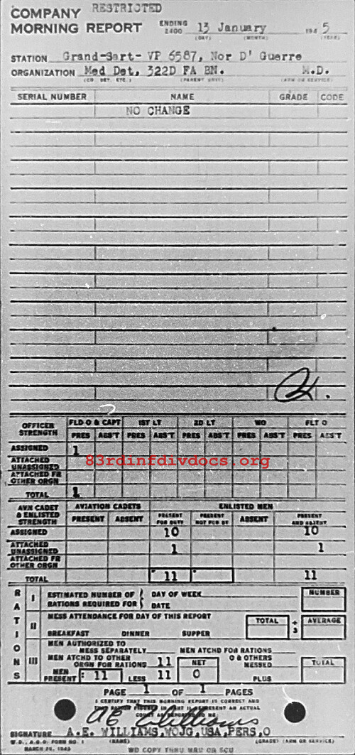 Morning report MEDDET/322FA for January 13, 1945