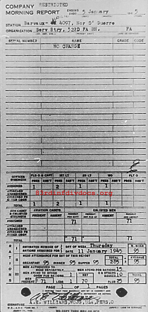 Morning report SERBTRY/322FA for January 5, 1945