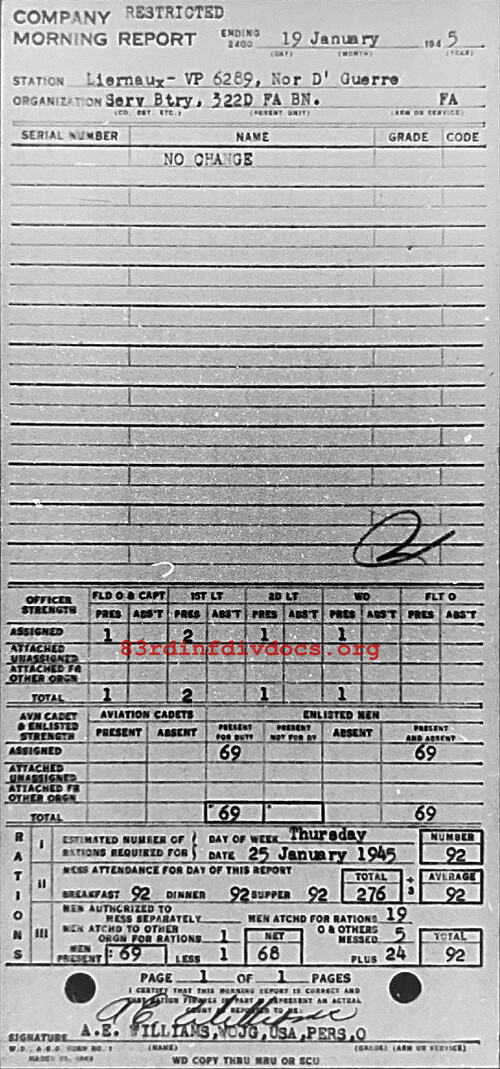 Morning report SERBTRY/322FA for January 19, 1945