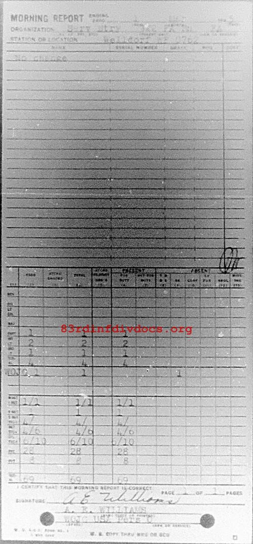 Morning report SERBTRY/322FA for March 1, 1945