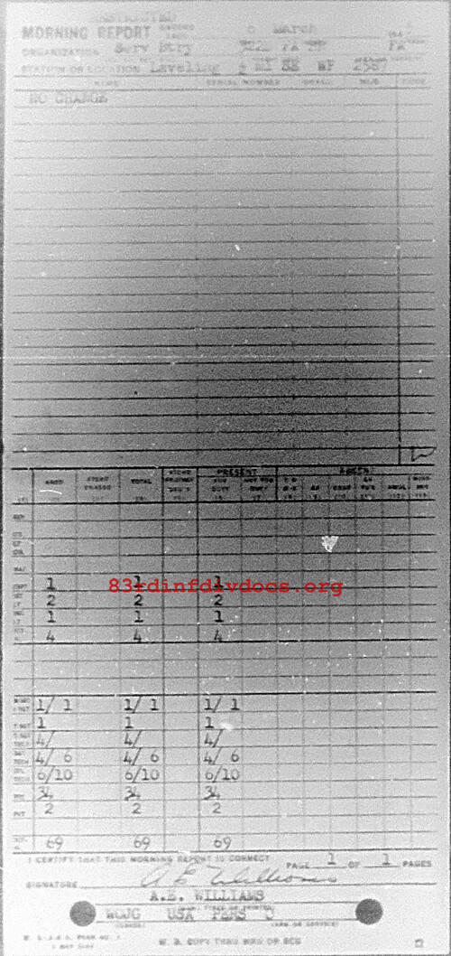 Morning report SERBTRY/322FA for March 6, 1945