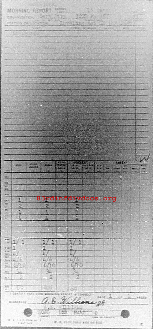 Morning report SERBTRY/322FA for March 15, 1945