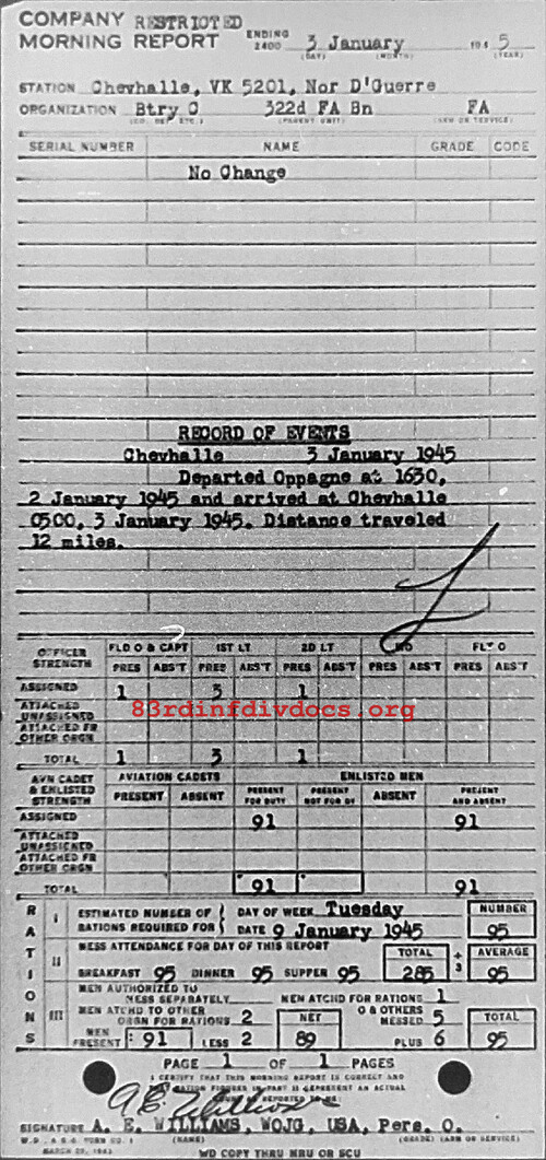 Morning report C/322FA for January 3, 1945