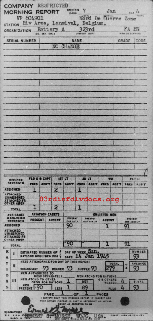 Morning report A/323FA for January 7, 1945
