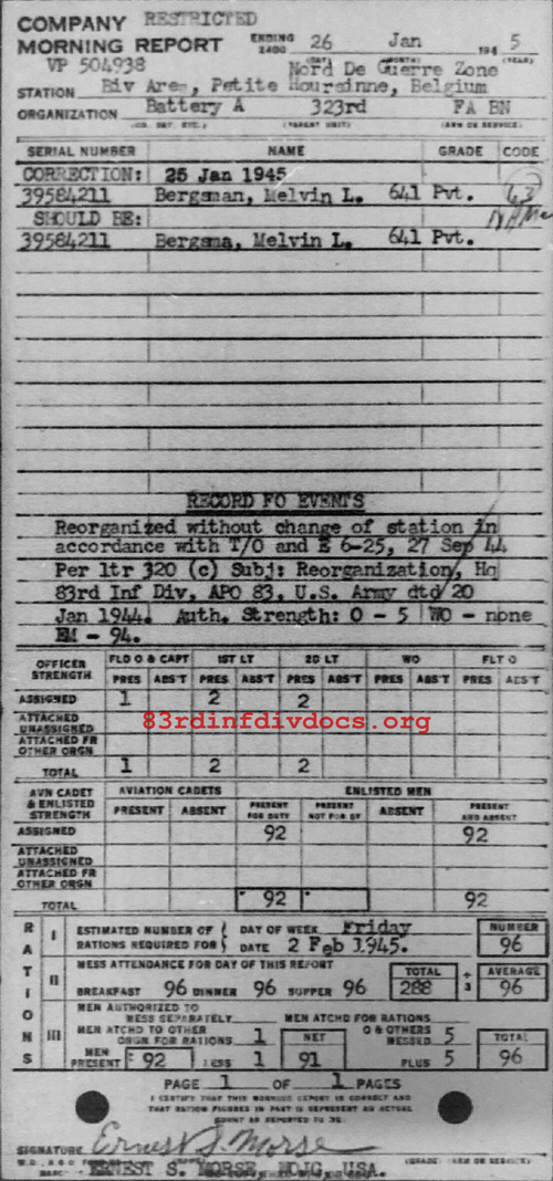 Morning report A/323FA for January 26, 1945