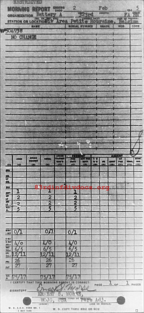 Morning report A/323FA for February 2, 1945
