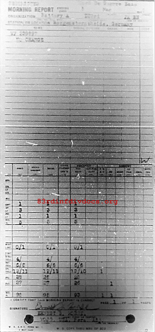 Morning report A/323FA for March 5, 1945
