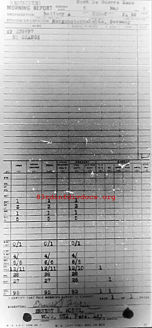 Morning report A/323FA for March 6, 1945