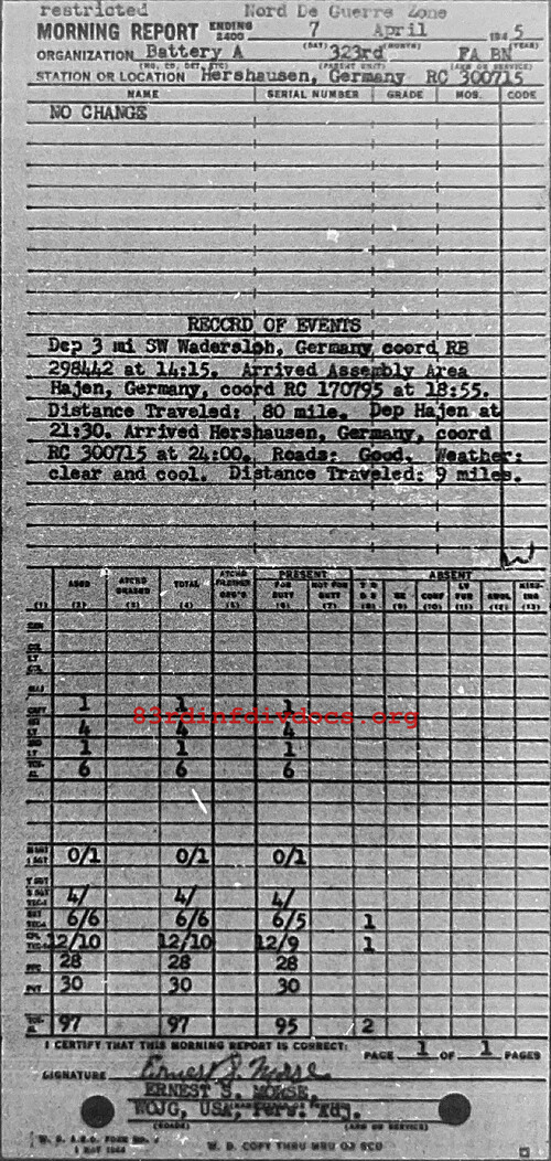 Morning report A/323FA for April 7, 1945