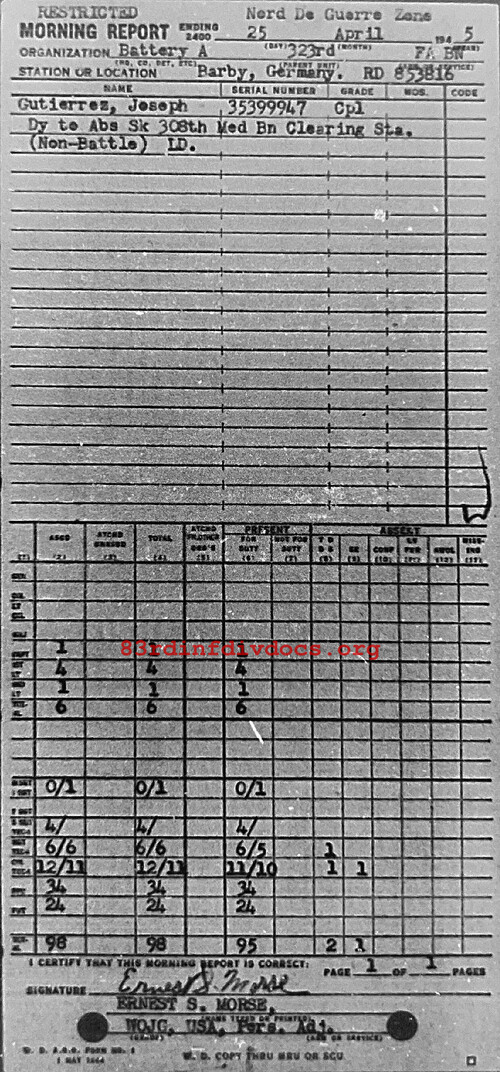Morning report A/323FA for April 25, 1945