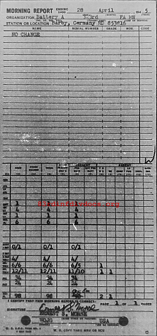 Morning report A/323FA for April 28, 1945