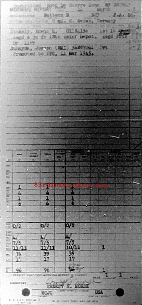 Morning report B/323FA for March 14, 1945