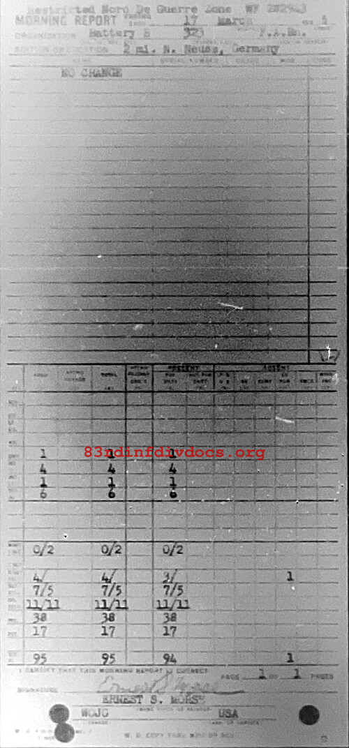 Morning report B/323FA for March 17, 1945