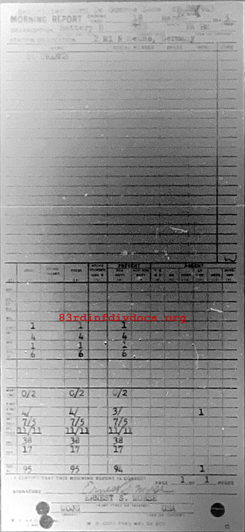Morning report B/323FA for March 18, 1945