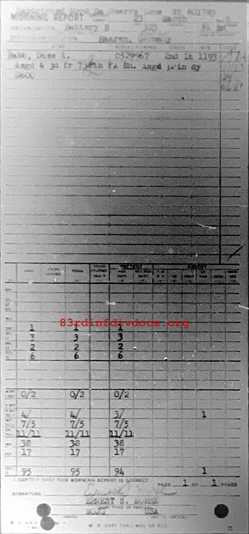 Morning report B/323FA for March 23, 1945