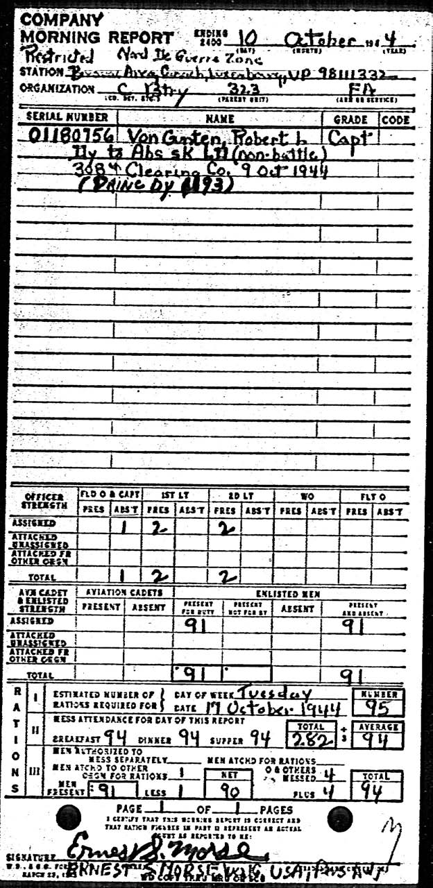 Morning report C/323FA for October 10, 1944