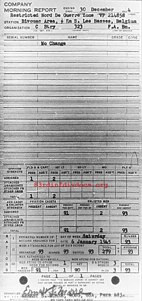Morning report C/323FA for December 30, 1944