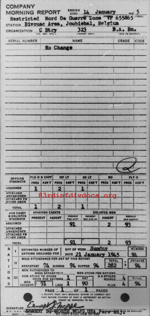 Morning report C/323FA for January 14, 1945