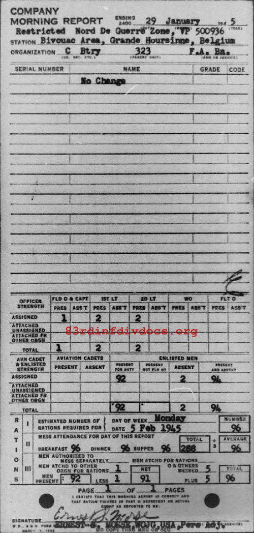 Morning report C/323FA for January 29, 1945