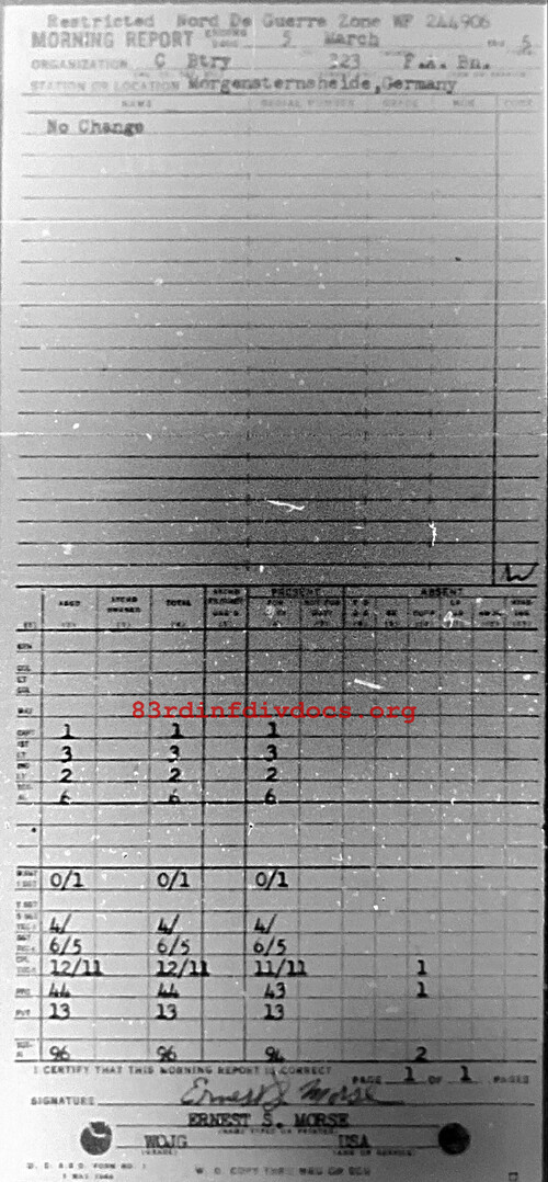 Morning report C/323FA for March 5, 1945