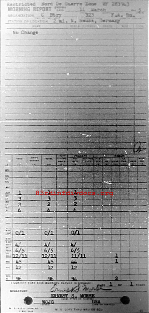 Morning report C/323FA for March 11, 1945