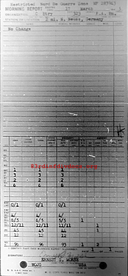 Morning report C/323FA for March 17, 1945