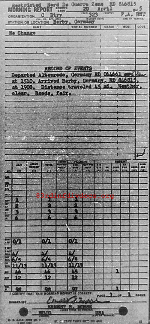 Morning report C/323FA for April 20, 1945