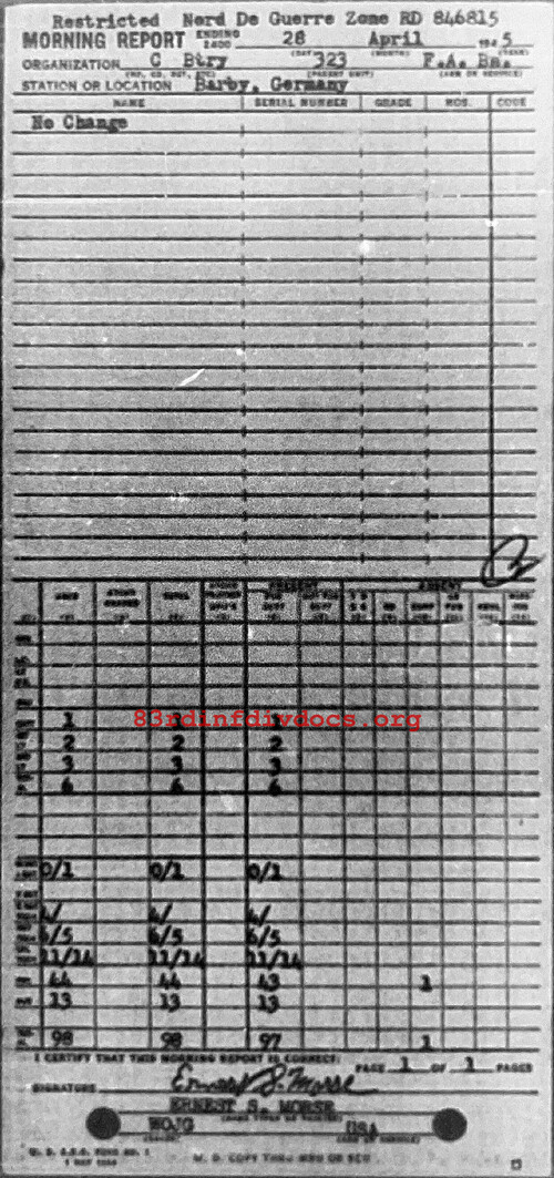Morning report C/323FA for April 28, 1945