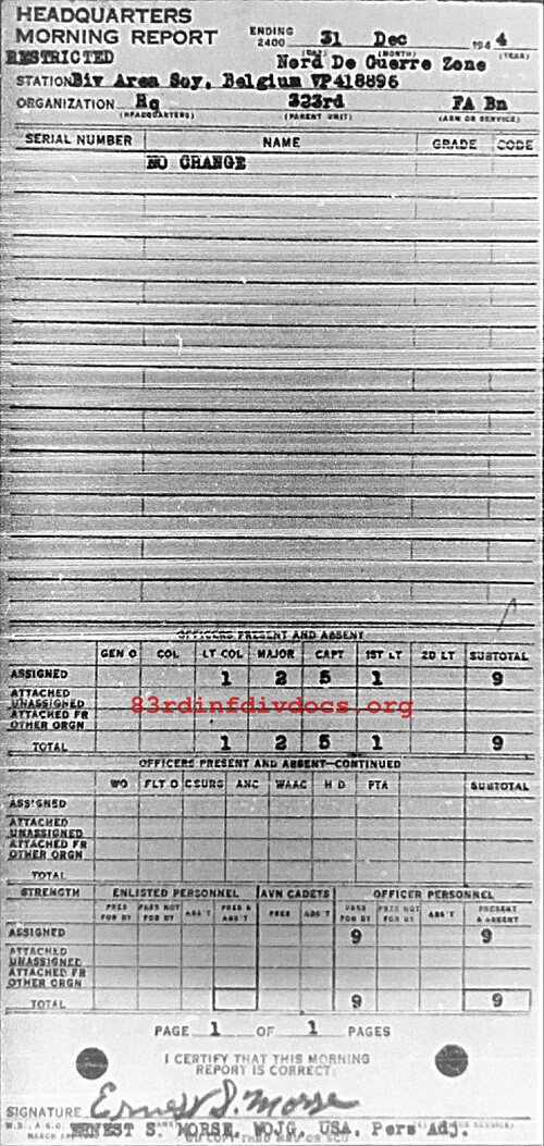 Morning report HQ/323FA for December 31, 1944
