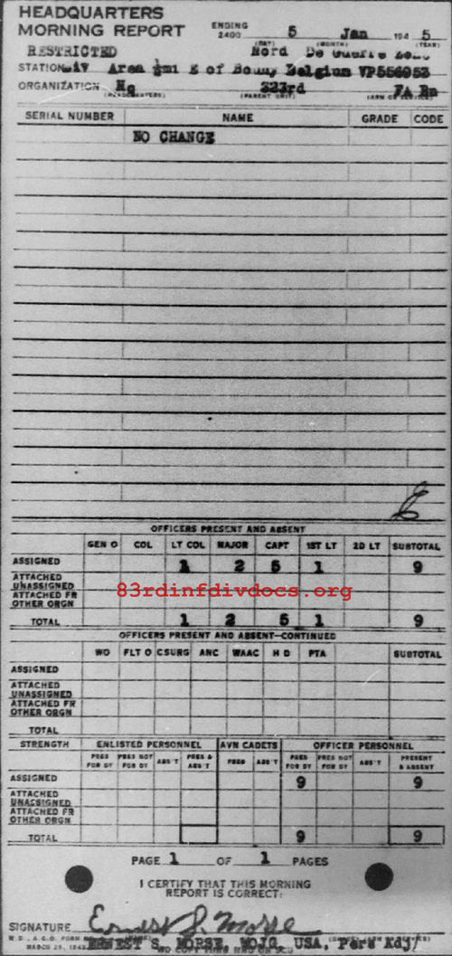 Morning report HQ/323FA for January 5, 1945