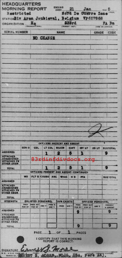 Morning report HQ/323FA for January 21, 1945