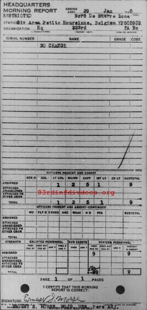 Morning report HQ/323FA for January 29, 1945