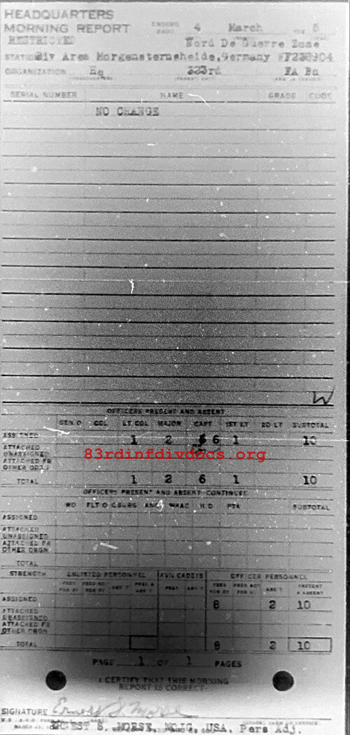 Morning report HQ/323FA for March 4, 1945