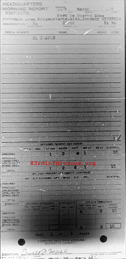 Morning report HQ/323FA for March 6, 1945