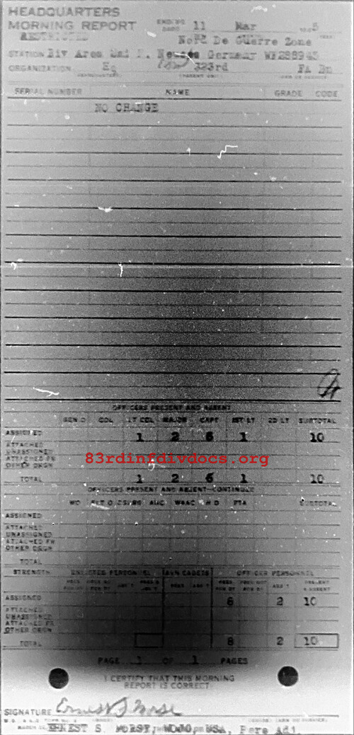 Morning report HQ/323FA for March 11, 1945