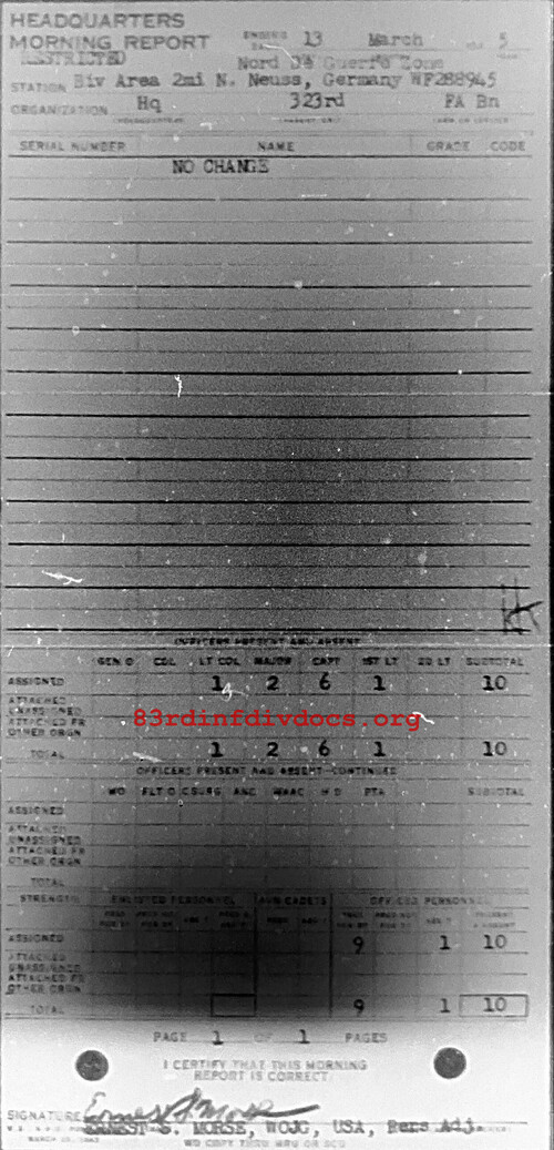 Morning report HQ/323FA for March 13, 1945
