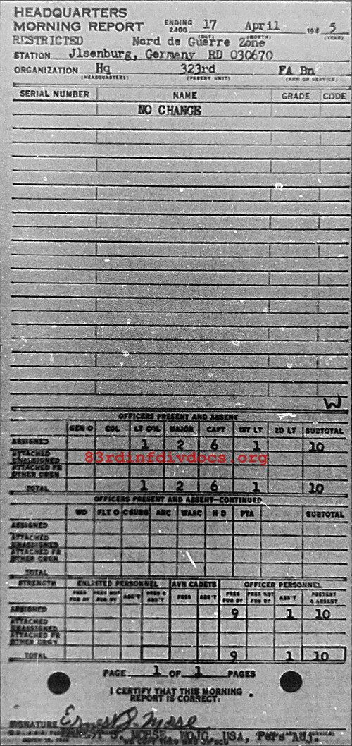 Morning report HQ/323FA for April 17, 1945